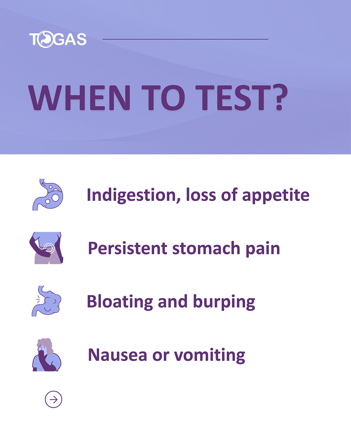 If you're experiencing persistent stomach pain, bloating and burping, nausea or vomiting, or indigestion with loss of appetite, it's time to talk to your doctor about H. pylori testing.